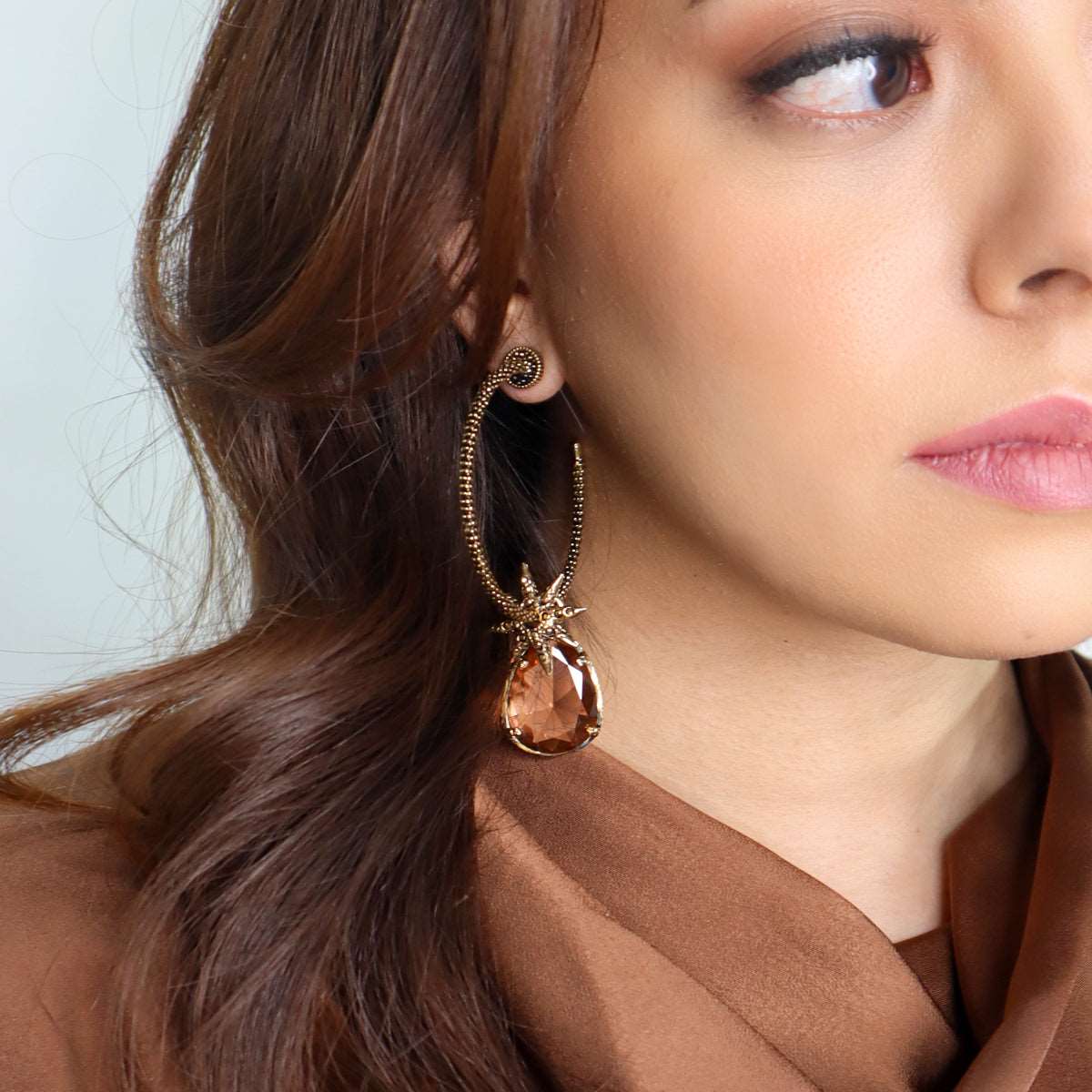 Las Arracadas Bugs Polaris iluminan color Morganita su baño de oro de 14K, una estrella encantadora y un cristal Facetado color , ofreciendo una fusión de lujo y fantasía Regina Castillo.