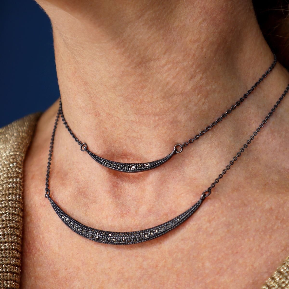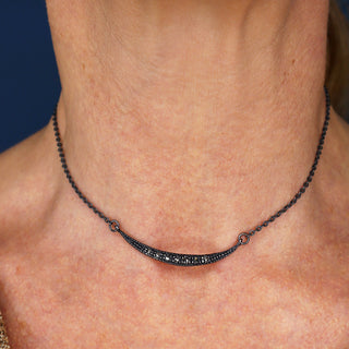 Collar smile mini de plata .925 con pátina grisácea e incrustaciones de piritas.