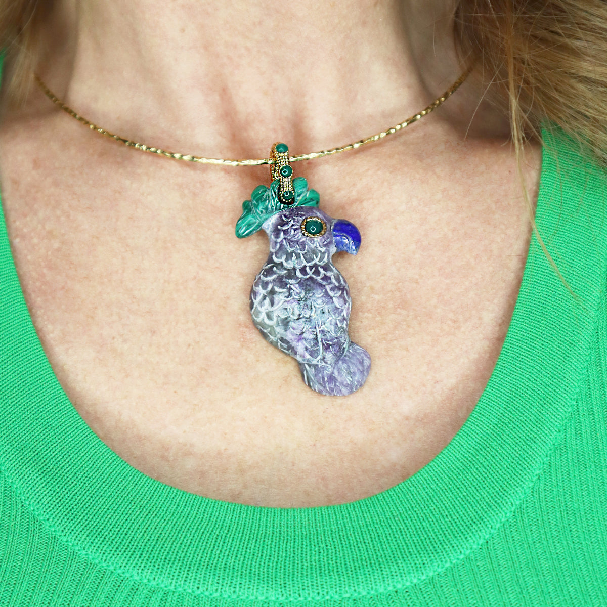 Collar rigido de aleación de metales con baño de oro de 14KT. Dije de ave