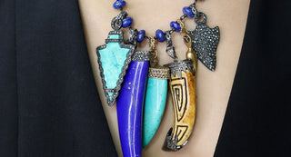 Collar artesanal con colgante de ojo ovalado, borde dorado.