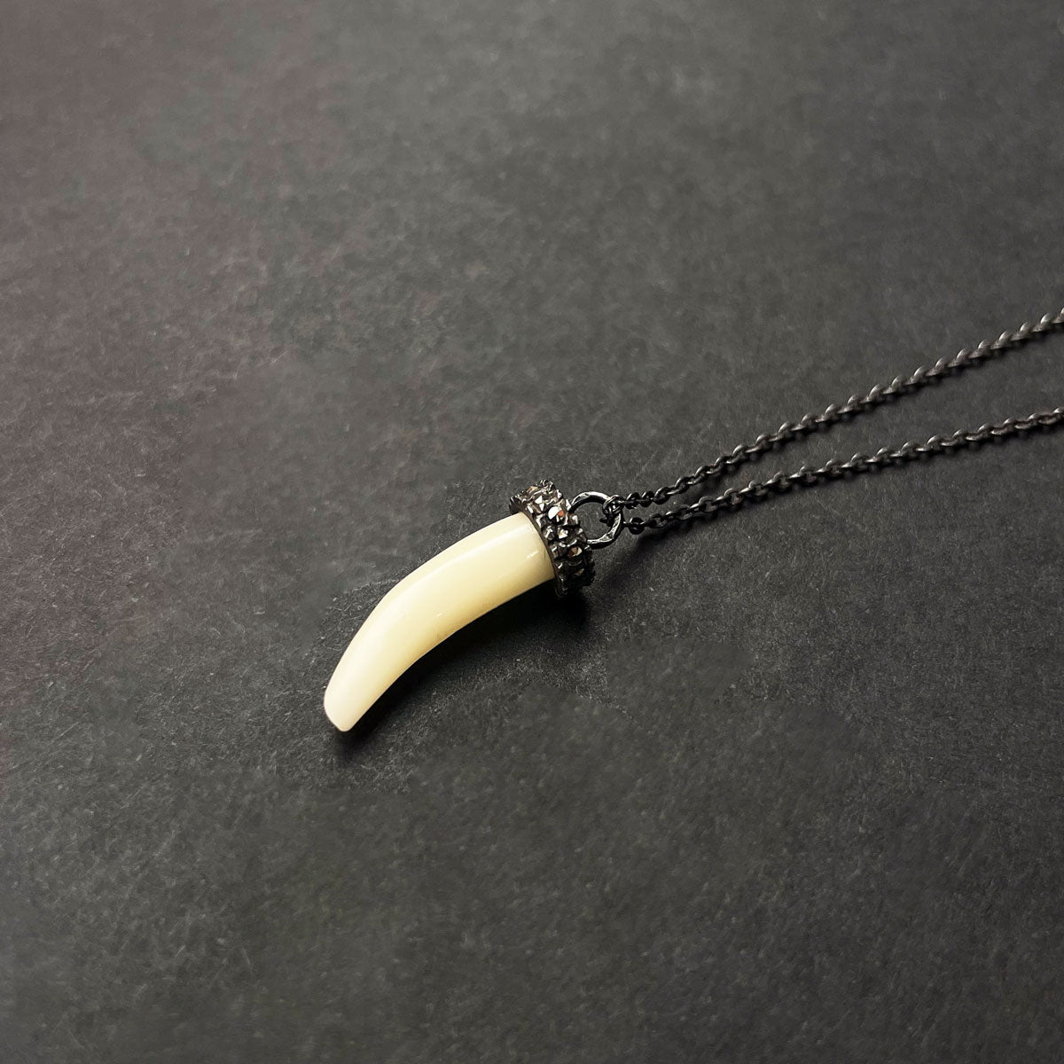 Collar diente tiburón con pavé en plata oxidada - diseño moderno y único