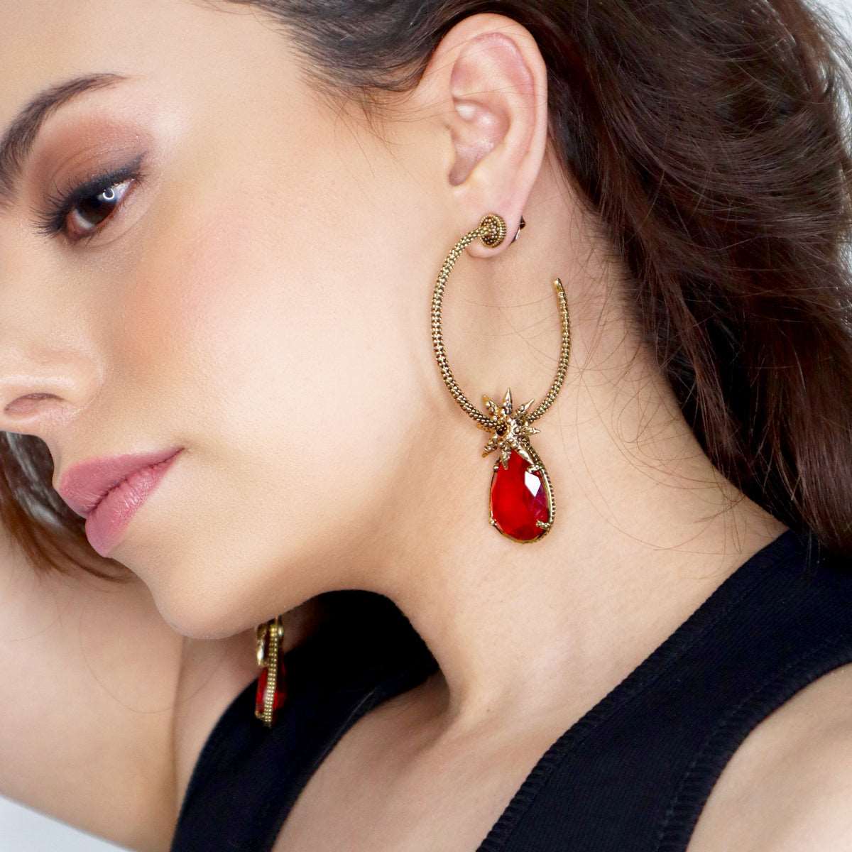 Boucle d'oreille créole en alliage de métal plaqué or 14 kt avec étoile et verre coloré.