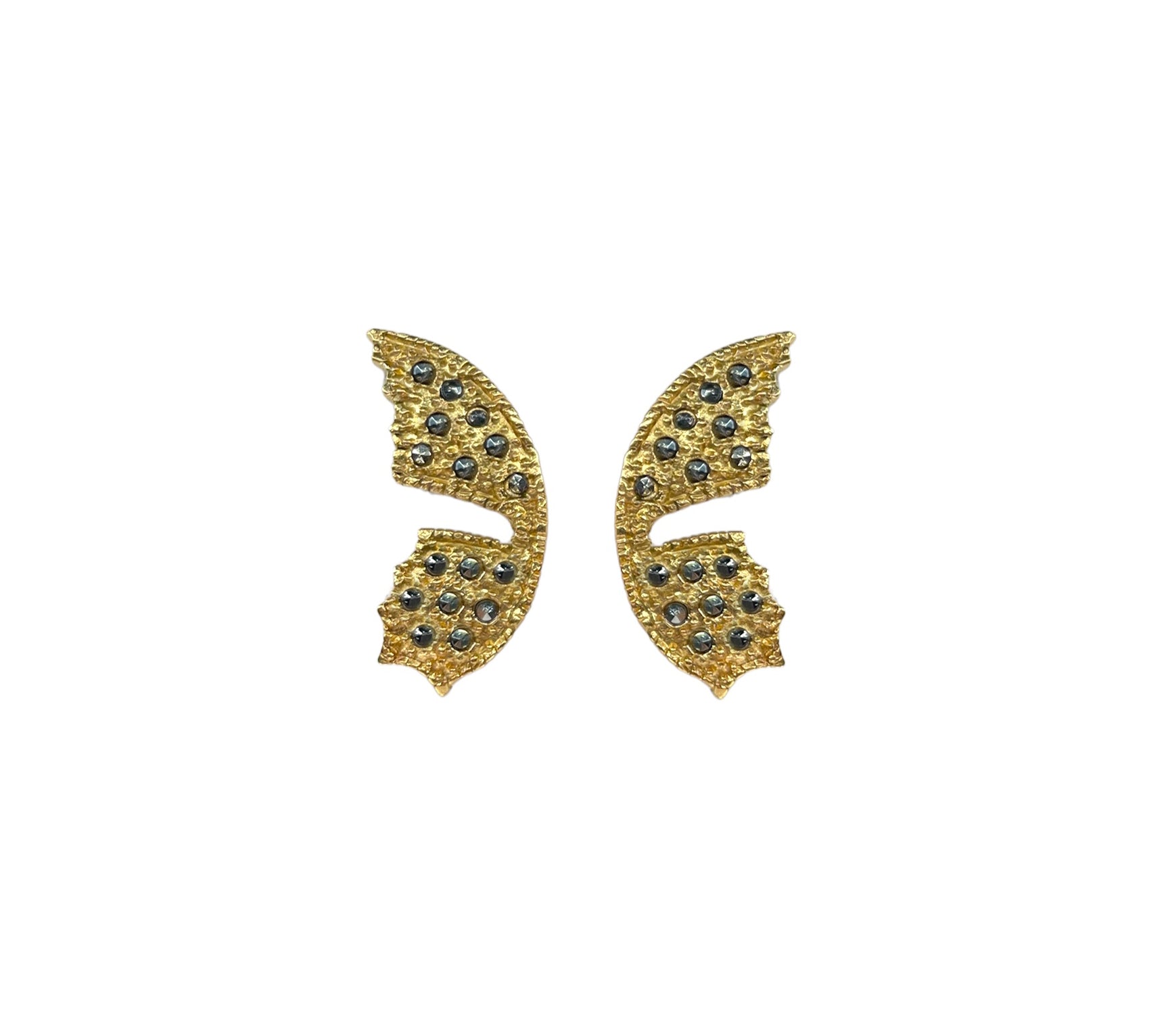 Boucle d'oreille papillon en or, argent .925 avec placage en or 14 carats, pyrites