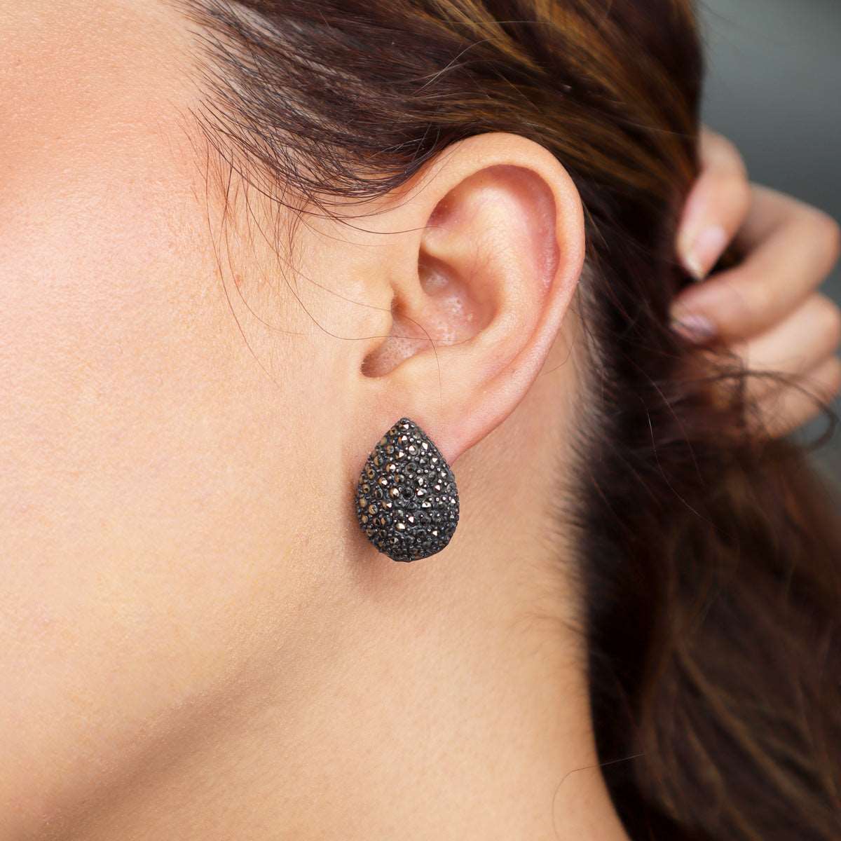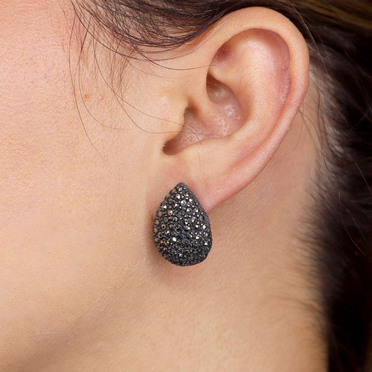 Boucles d'oreilles pavé Viru en argent .925 avec finition bleuie et incrustation de pyrite