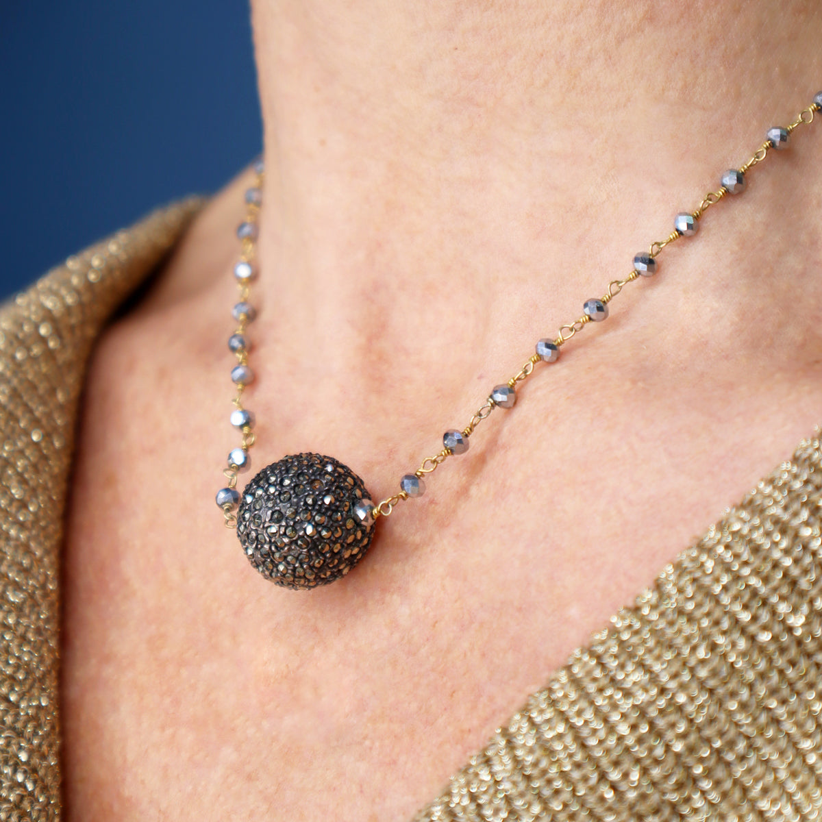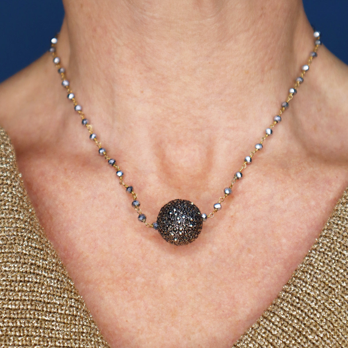 Collier serti de pierres et pendentif en argent .925 incrusté de pyrites et patine grisâtre.