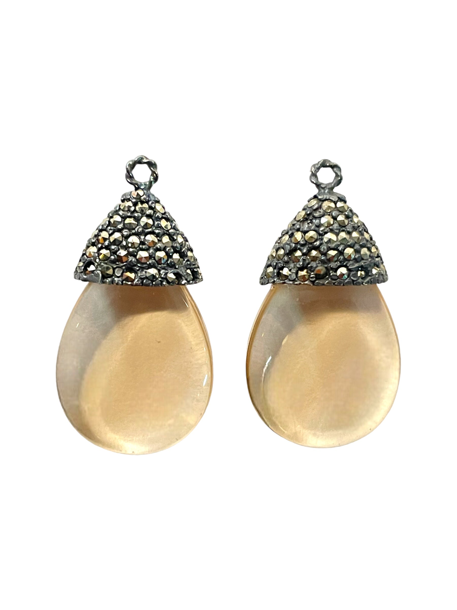 Enrichissez votre style avec le Drop Hatty MED Pav, en argent .925 avec une finition bleuie, mis en valeur par des incrustations de pyrites et de cristal facetté.