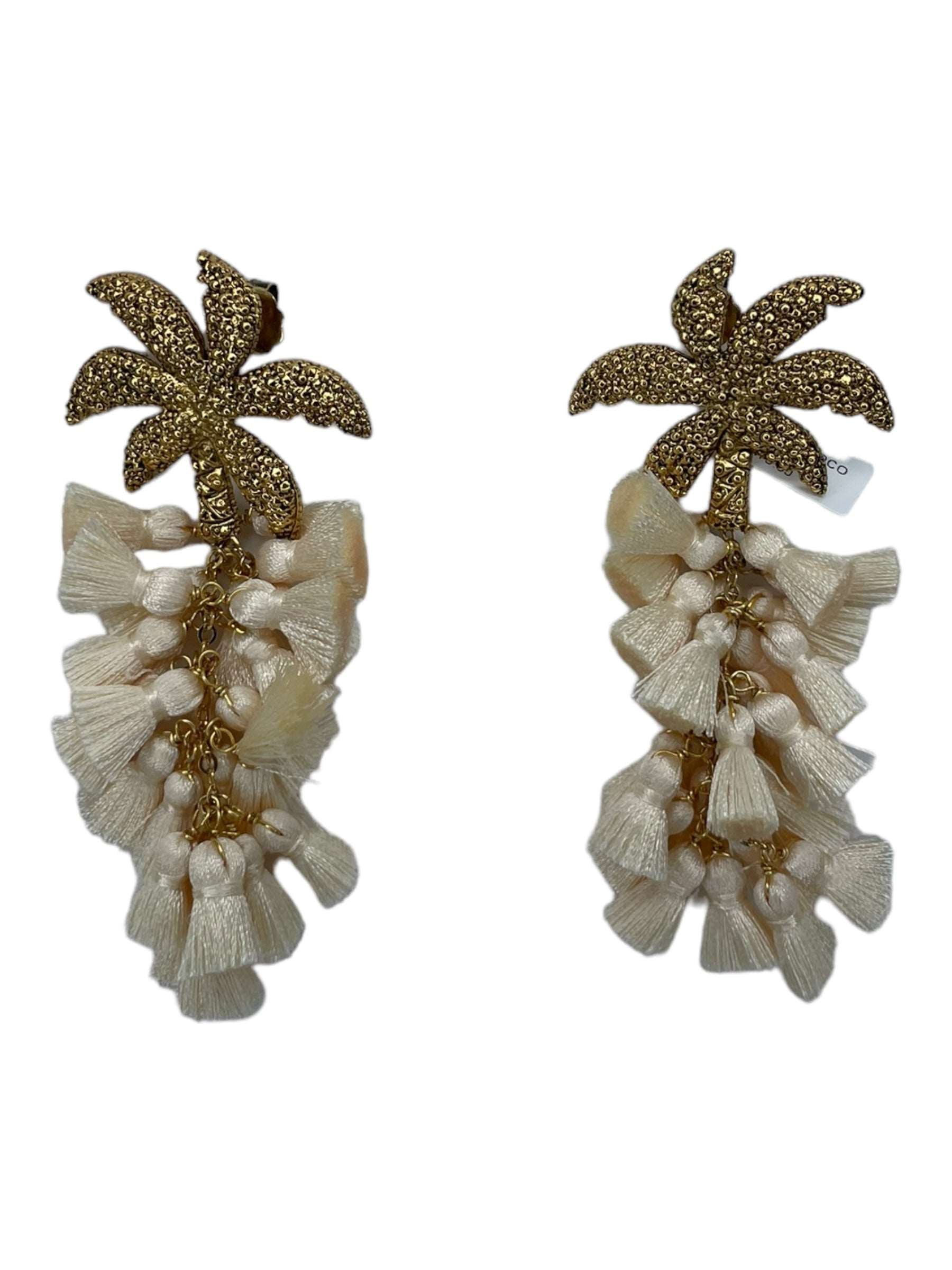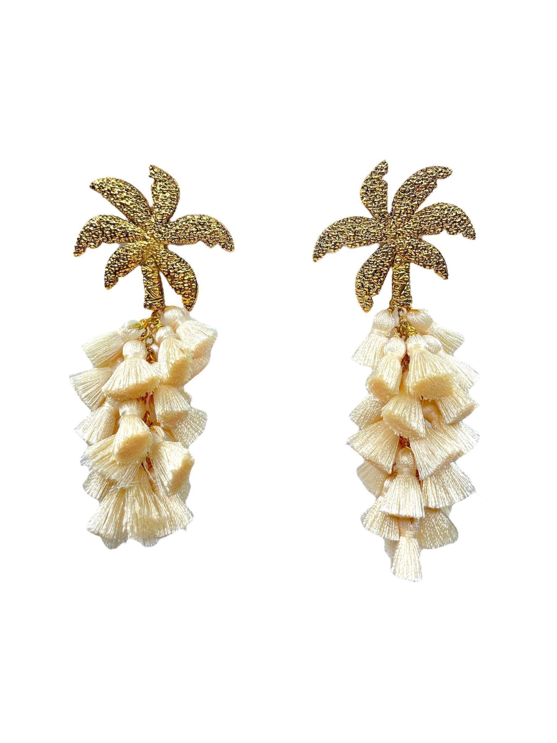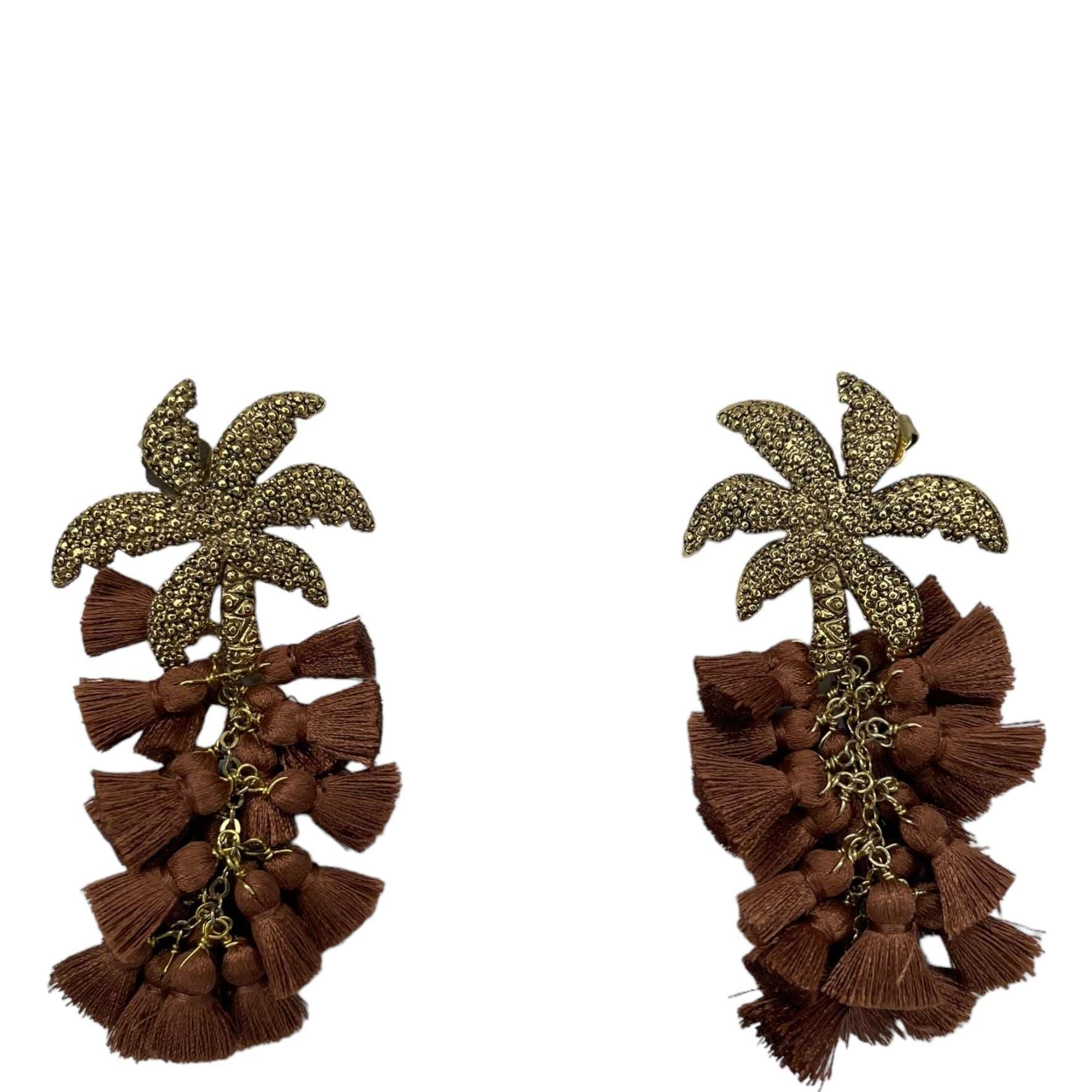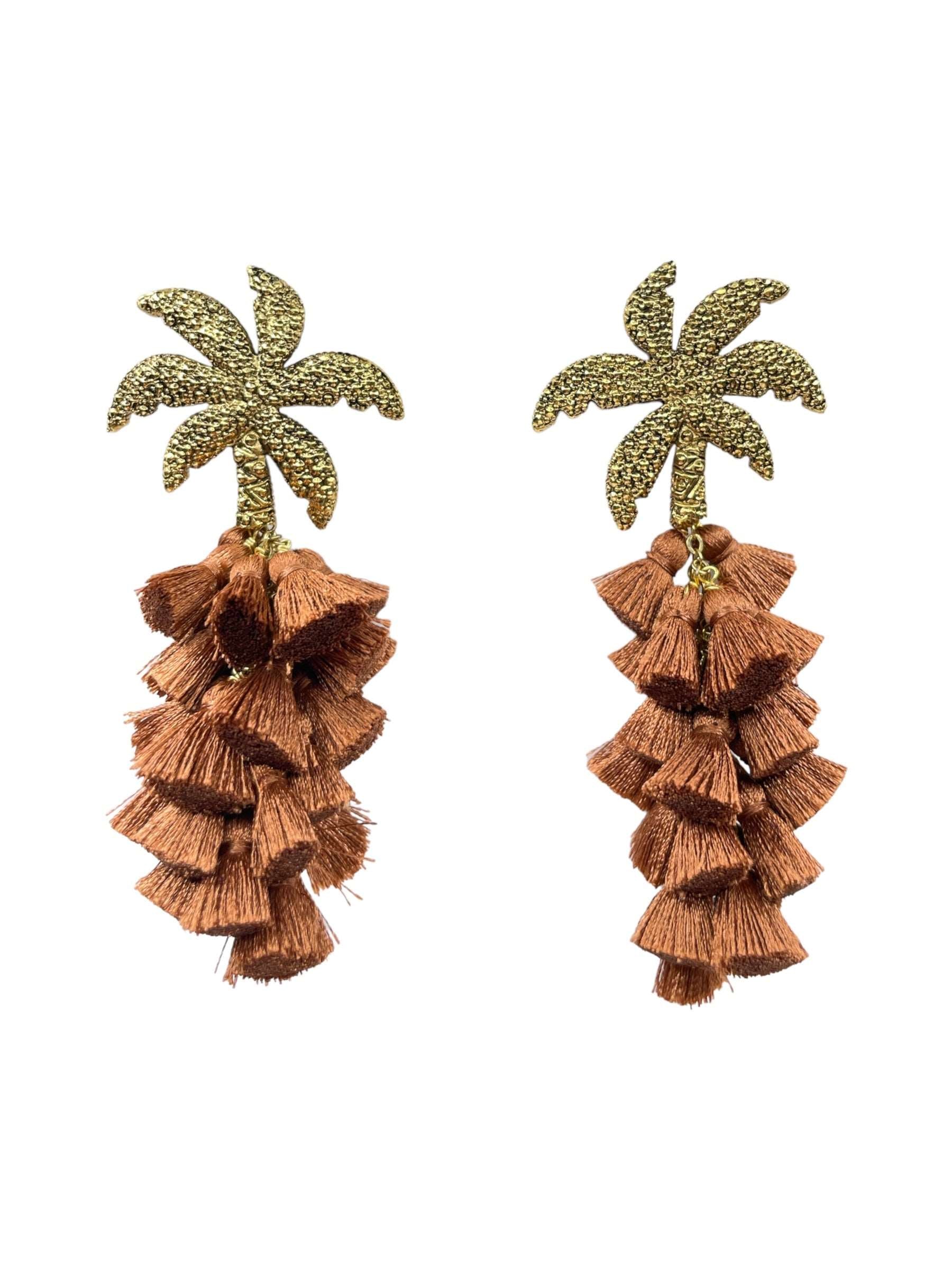 Arete palmera de aleación de metales con baño de oro de 14 kt y drop de pompon de seda de color.