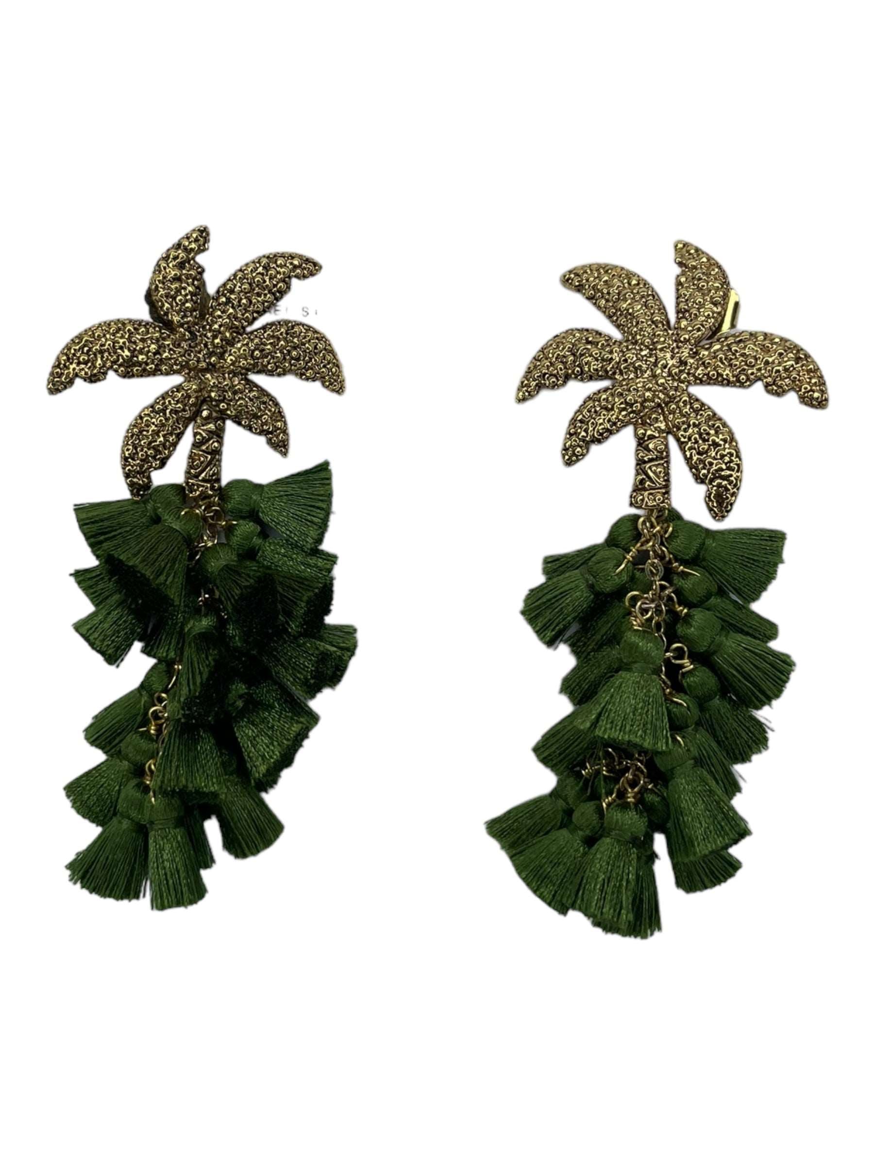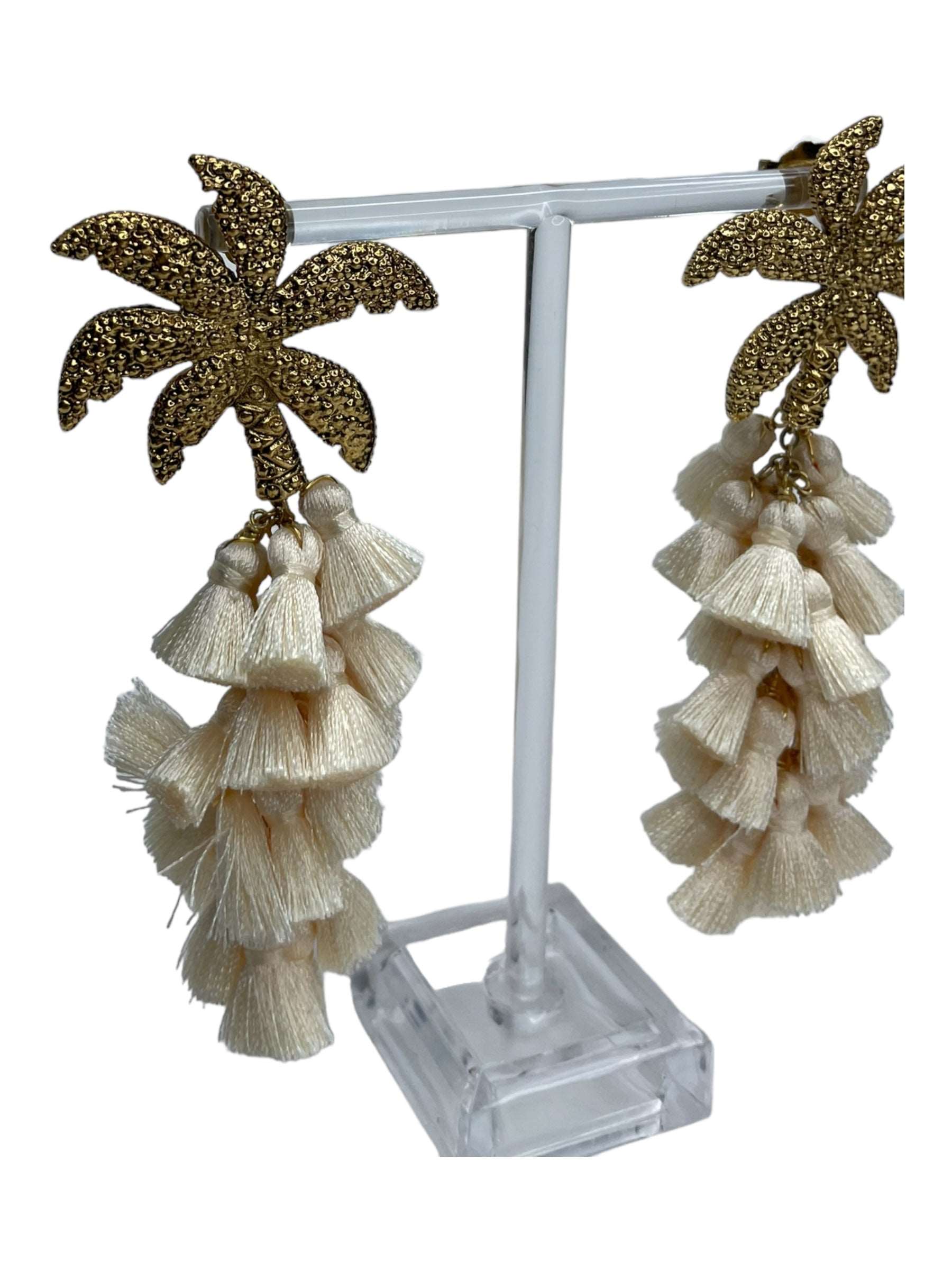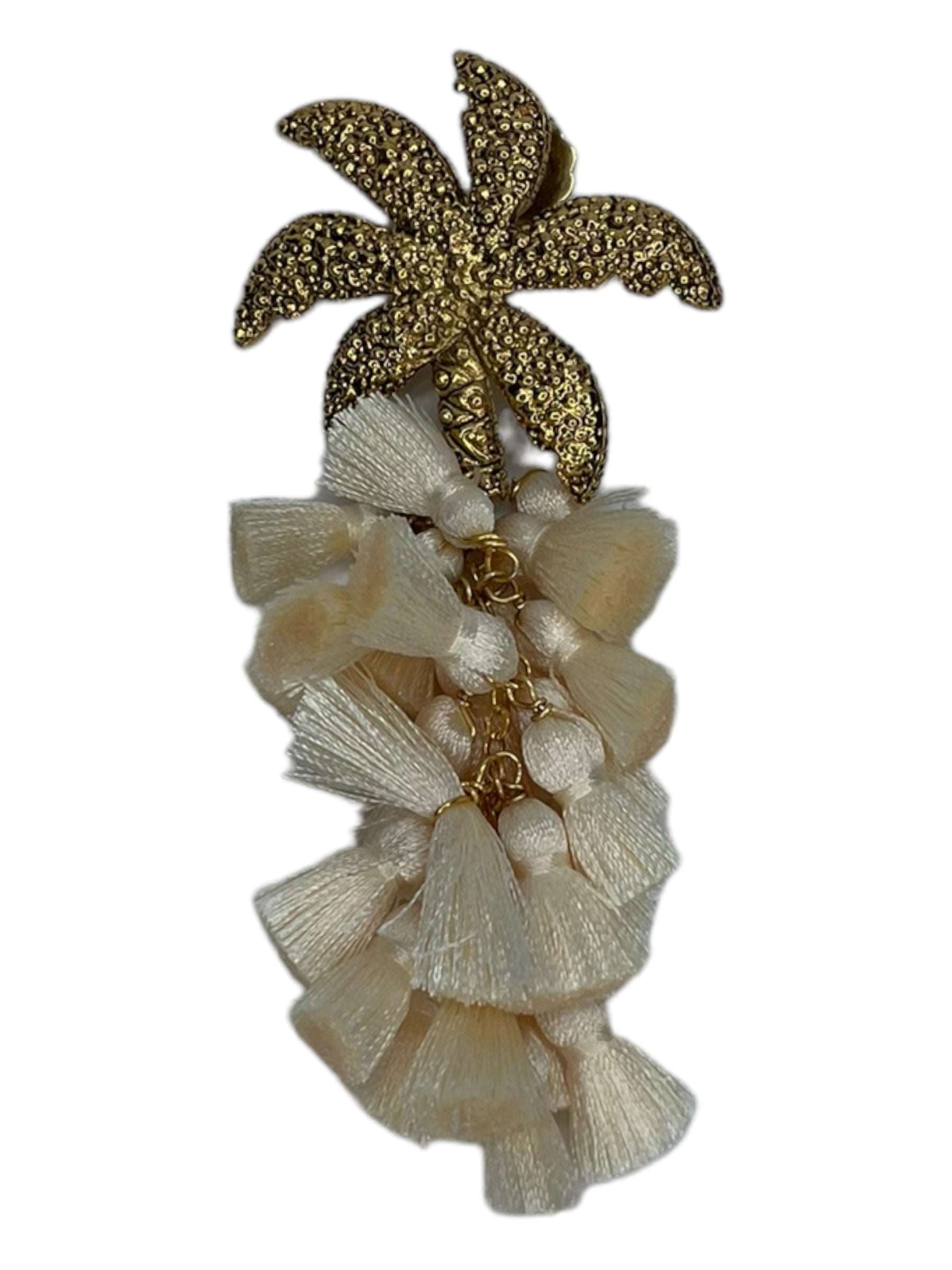 Arete palmera de aleación de metales con baño de oro de 14 kt y drop de pompon de seda de color.