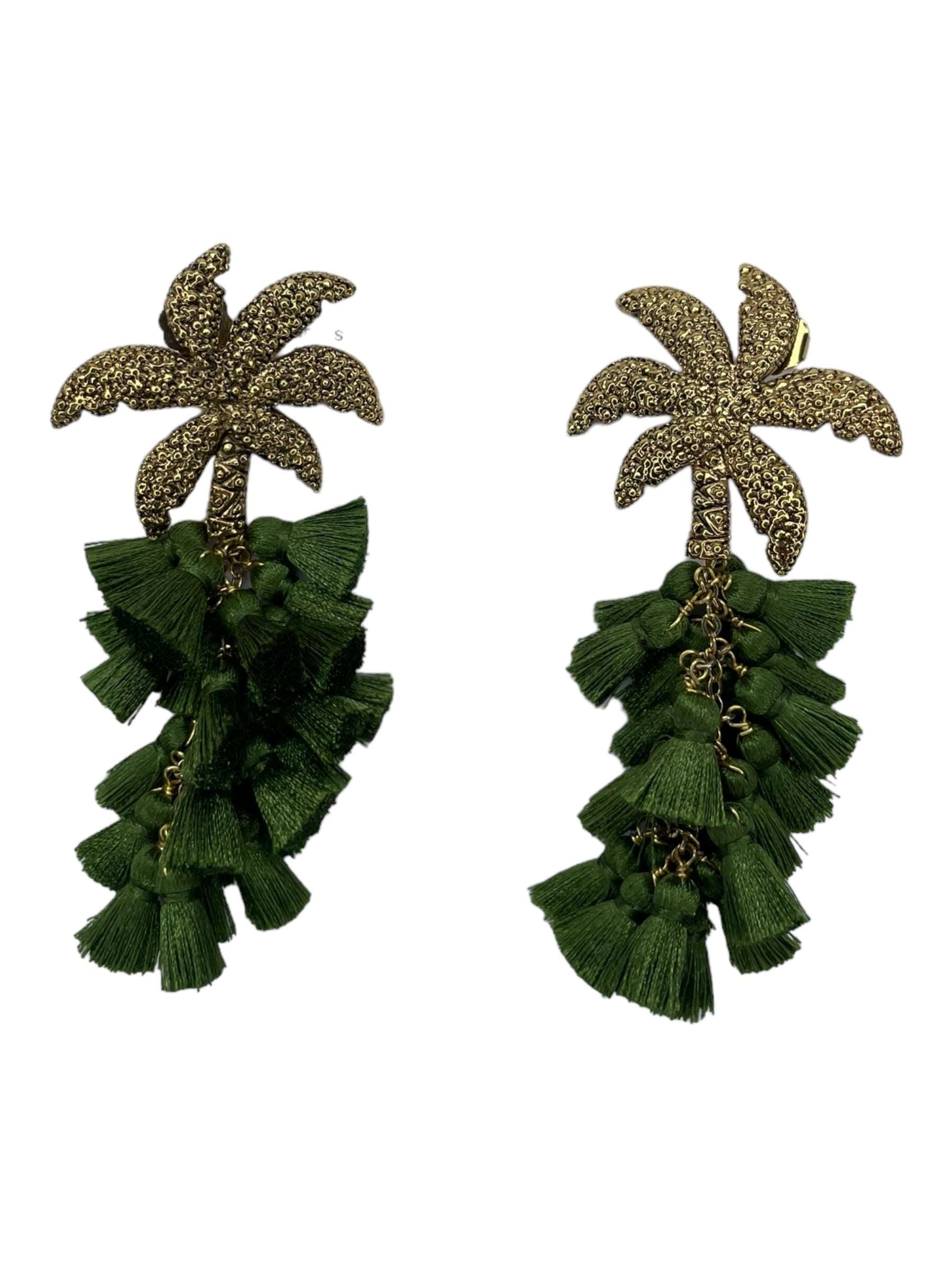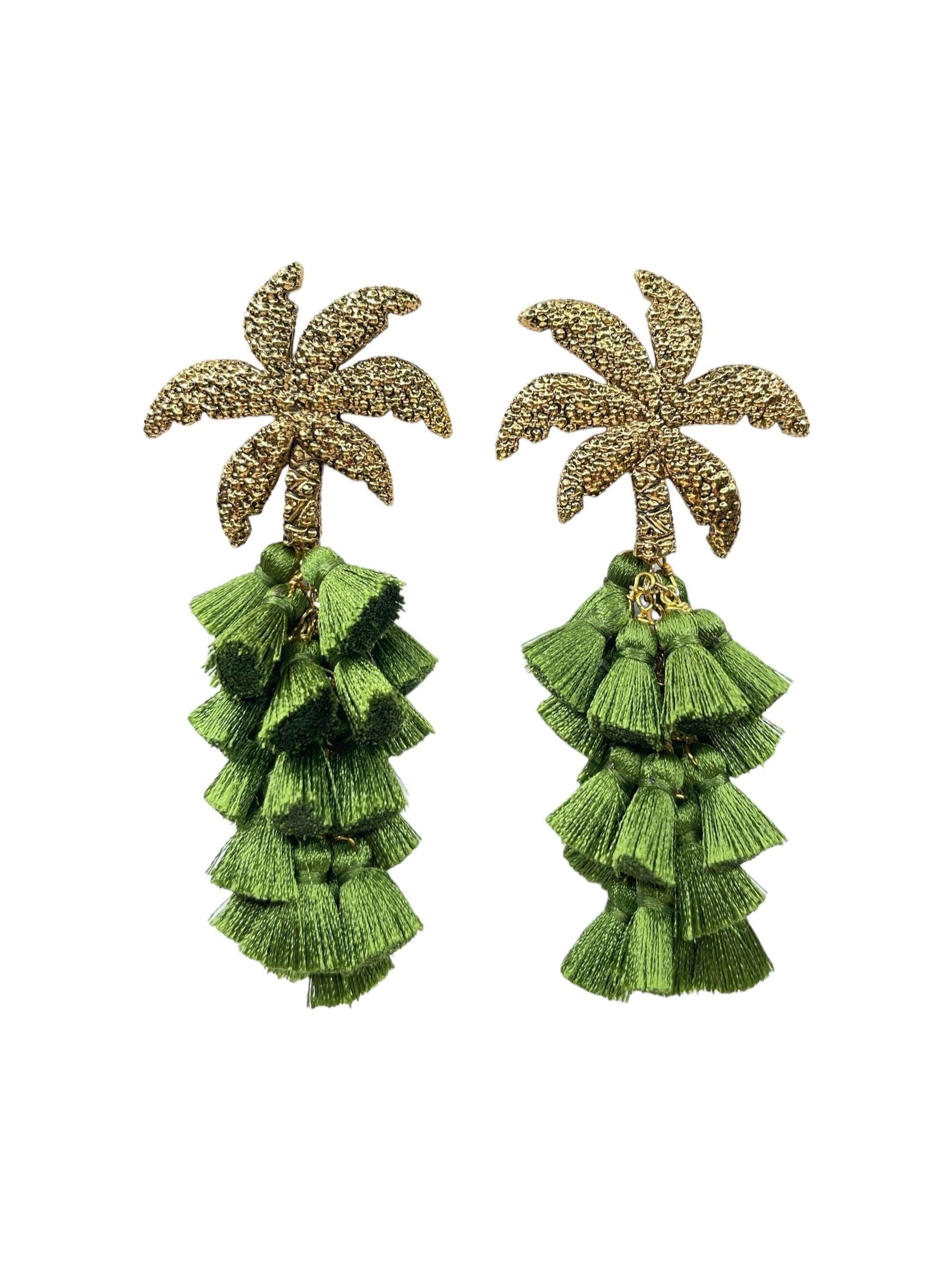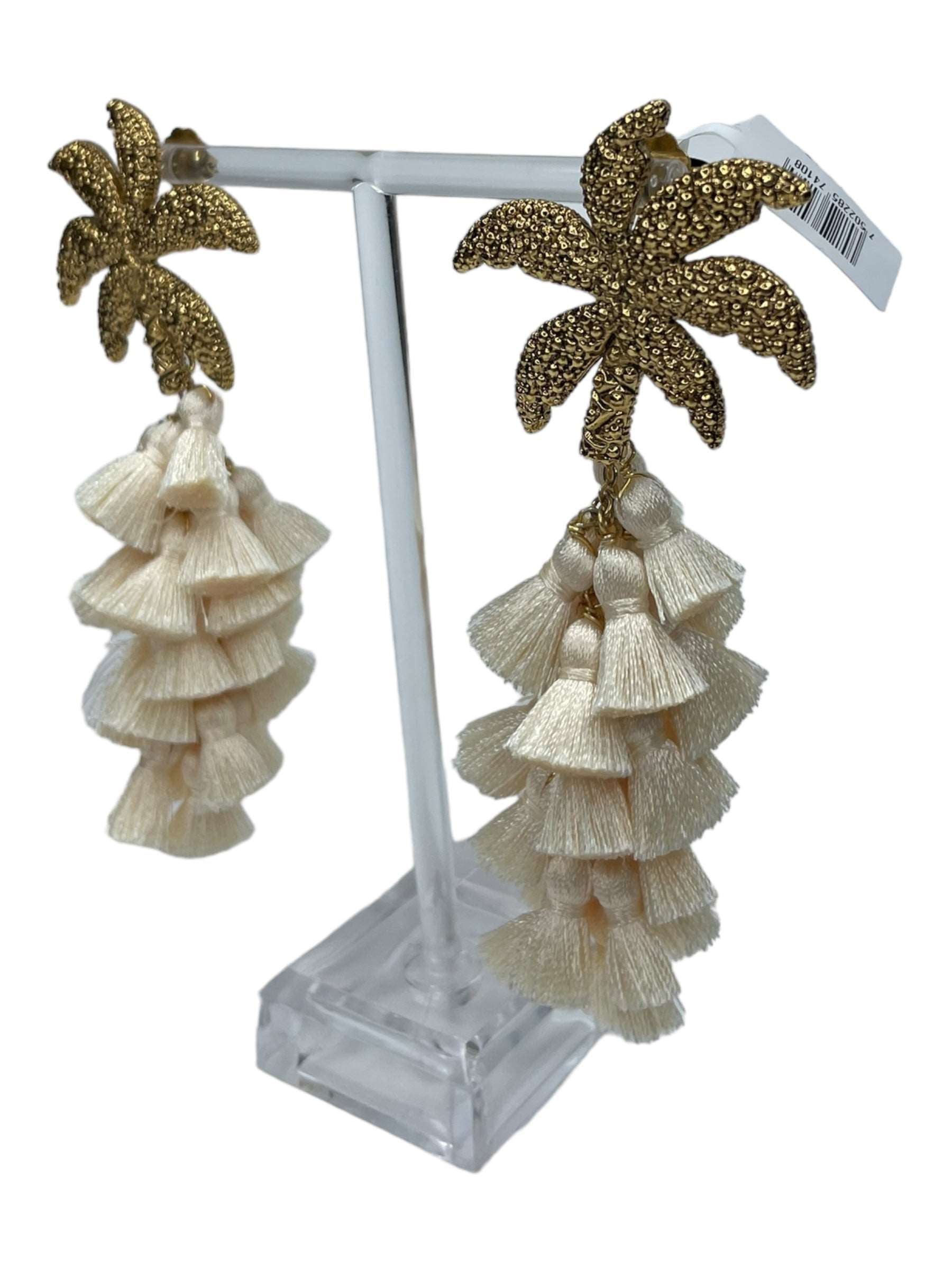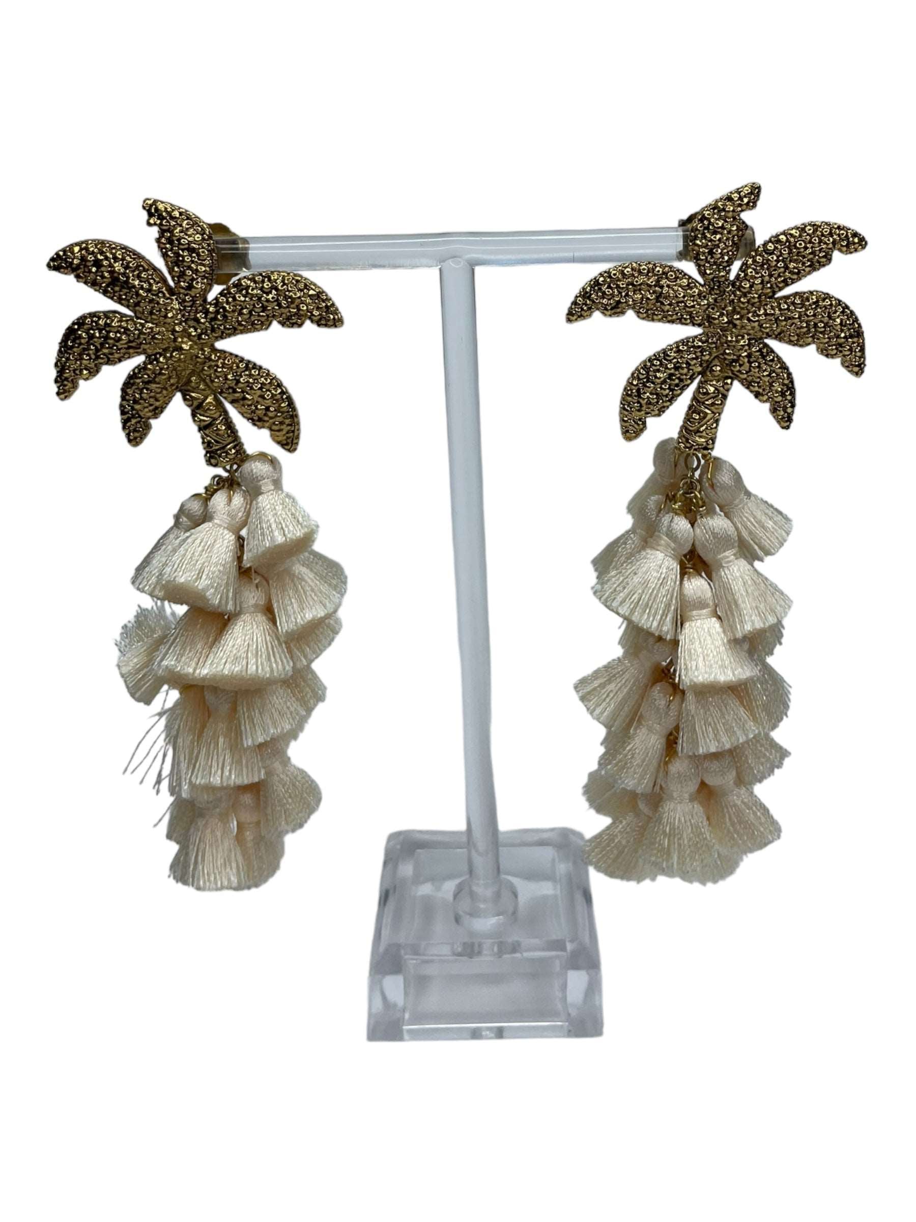 Arete palmera de aleación de metales con baño de oro de 14 kt y drop de pompon de seda de color.